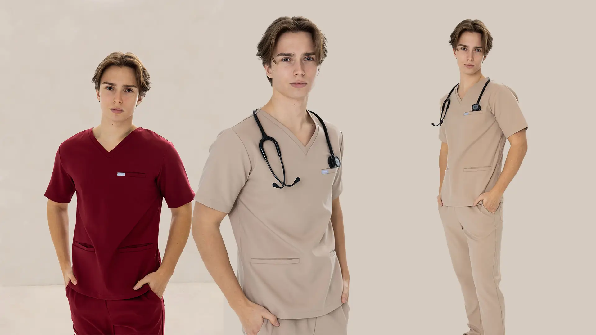 Dziś odzież medyczna to nie tylko biel i błękit. W naszej kolekcji znajdziesz scrubsy dla lekarzy i pielęgniarek w odcieniach takich jak: granat, bordo, beż, oliwkowa zieleń czy pastelowy błękit. Dzięki temu możesz wyrazić swój styl, a placówki mogą ujednolicić wizerunek swojego zespołu.