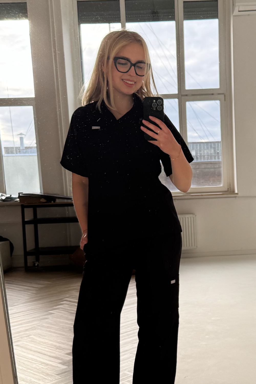 Możesz ją łatwo połączyć z joggerami medycznymi albo klasycznymi spodniami – w tym samym lub kontrastowym kolorze. To doskonała baza do stworzenia kompletnego, stylowego zestawu medycznego.